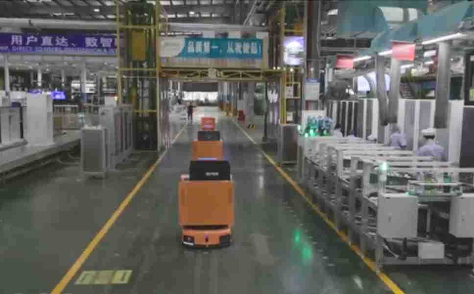 为车载冰箱物流配送打造的智能解决方案,,包含产中物流通过潜伏举升AMR搬运至线边,,产后成品物流智能仓储,,流程包含产中物流智能齐套入库,,,线边安灯叫料AMR智能配送至线边,,成品入库、、、出库,,,通过无人堆高车机器人,,智能仓储管理替代人工作业管理,,实现更高存储、、、更高效率、、更具柔性化的解决方案。。。。